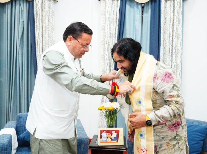 देहरादून, मुख्यमंत्री पुष्कर सिंह धामी से आज मुख्यमंत्री आवास में प्रसिद्ध कथा वाचक एवं आध्यात्मिक गुरु देवकीनंदन ठाकुर जी महाराज ने शिष्टाचार भेंट की।