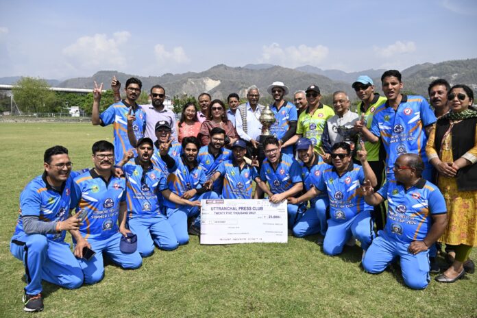 देहरादून, उत्तरांचल प्रेस क्लब द्वारा आयोजित द्वितीय मंजूल सिंह मांजिला स्मृति अंतर क्रिकेट प्रतियोगिता का फाइनल मुकाबला सोमवार को महाराणा प्रताप स्पोर्ट्स कॉलेज, रायपुर में खेला गया। रोमांचक मुकाबले में दून डेयर डेविल्स ने दून सुपर किंग्स को 6 विकेट से हराकर खिताब अपने नाम किया। आज का मैन ऑफ द मैच अरविंद रावत को मिला। टूर्नामेंट की मैन ऑफ द सीरिज सोबन सिंह गुसाईं, बेस्ट बॉलर ऑफ द टूर्नामेंट अजय राणा व बेस्ट बेस्टमेन ऑफ टूर्नामेंट सोबन सिंह गुसाईं को मिला। इसके साथ ही 50 प्लस खिलाड़ियों में बेस्ट बॉलर ऑफ टूर्नामेंट में अजय राणा व बेस्ट बेस्टमेन ऑफ टूर्नामेंट शैलेन्द्र सेमवाल को मिला।