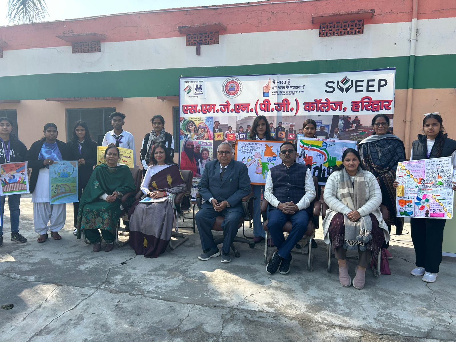 हरिद्वार( कुलभूषण )एस.एम.जे.एन. पी.जी. कॉलेज, हरिद्वार में आज आंतरिक गुणवत्ता आश्वासन प्रकोष्ठ, निर्वाचन साक्षरता क्लब, स्वीप तथा राष्ट्रीय सेवा योजना के संयुक्त तत्वाधान में ‘राष्ट्रीय मतदाता दिवस’ के अवसर पर भव्य जागरूकता कार्यक्रम आयोजित किया गया। कार्यक्रम की अध्यक्षता करते हुए अखिल भारतीय अखाड़ा परिषद एवं कॉलेज प्रबन्ध समिति के अध्यक्ष श्रीमहन्त रविन्द्रपुरी ने कहा कि राष्ट्र के संविधान ने सभी को मतदान का अधिकार दिया है, परन्तु समाज में जागरूकता की कमी है। उन्होंने अपील की कि विवेकपूर्ण मतदान ही एक मजबूत एवं स्थायी सरकार चुन सकता है, जो सशक्त राष्ट्र का मार्ग प्रशस्त करती है।