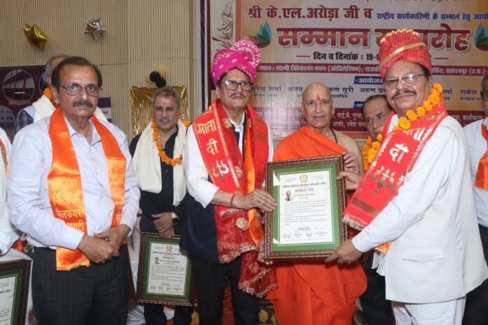 हरिद्वार ( कुलभूषण)स्वामी विवेकानंद भवन, राजकीय इंटर कॉलेज सहारनपुर में आयोजित नेशनल सीनियर सिटीजन वैलफेयर सोसायटी के कार्यक्रम में दिल्ली, देहरादून, हरिद्वार, देवबंद से संस्था की राष्ट्रीय कार्यकारिणी सदस्यों ने भाग लिया तथा संस्थापक केएल अरोडा द्वारा सभी नव नियुक्त पदाधिकारियों की घोषणा की गयी।