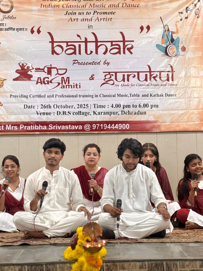 देहरादून, अनंत गोपाल संगीत मंच समिति एवं गुरुकुल के संयुक्त तत्वावधान में “बैठक” नामक एक सांस्कृतिक संध्या का भव्य आयोजन डी.बी.एस. कॉलेज, करनपुर, देहरादून में किया गया।