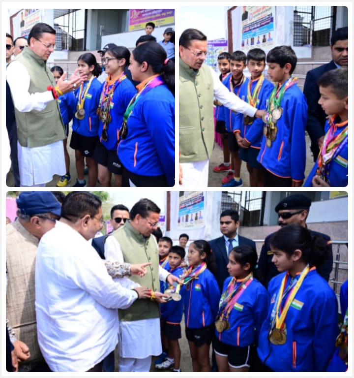 देहरादून, उत्तरांचल प्रेस क्लब द्वारा महाराणा प्रताप स्पोर्ट्स कालेज में पत्रकारों को चुस्त और फिट रहने के उद्देश्य से आयोजित अंतर क्रिकेट प्रतियोगिता का उद्घाटन मुख्यमंत्री पुष्कर सिंह धामी द्वारा किया गया, इस मौके राज्य के सुदूर पर्वतीय दुर्गम क्षेत्र जोशीमठ से आए प्रतिभावान होनहार युवा टेबल टेनिस खिलाड़ियों ने सीएम से भेंट की, कोच विजय कुमार के नेतृत्व में टीटी का हुनर सीख रहे इन युवा खिलाड़ियों ने इसी वर्ष बिहार राज्य में अखिल भारतीय विधा भारती शिक्षा संस्थान में 36वीं राष्ट्रीय टेबल टेनिस खेल प्रतियोगिता में आठ स्वर्ण पदक जीत कर राज्य का नाम रोशन किया, पिछले वर्ष भी टीटी के इन युवा खिलाड़ियों ने राजस्थान में 10 पदक जीते थे, सीमित साधन और खेल की ललक बरकरार रखे सुदूर पर्वतीय क्षेत्र के यह खिलाड़ी युवा कोच विजय कुमार के सानिध्य में लगातार राज्य के लिए मैडल प्राप्त करने पर भी सीएम धामी ने बधाई और अपना आशीर्वाद देने के साथ खिलाड़ियों के उज्ज्वल भविष्य की कामना की।