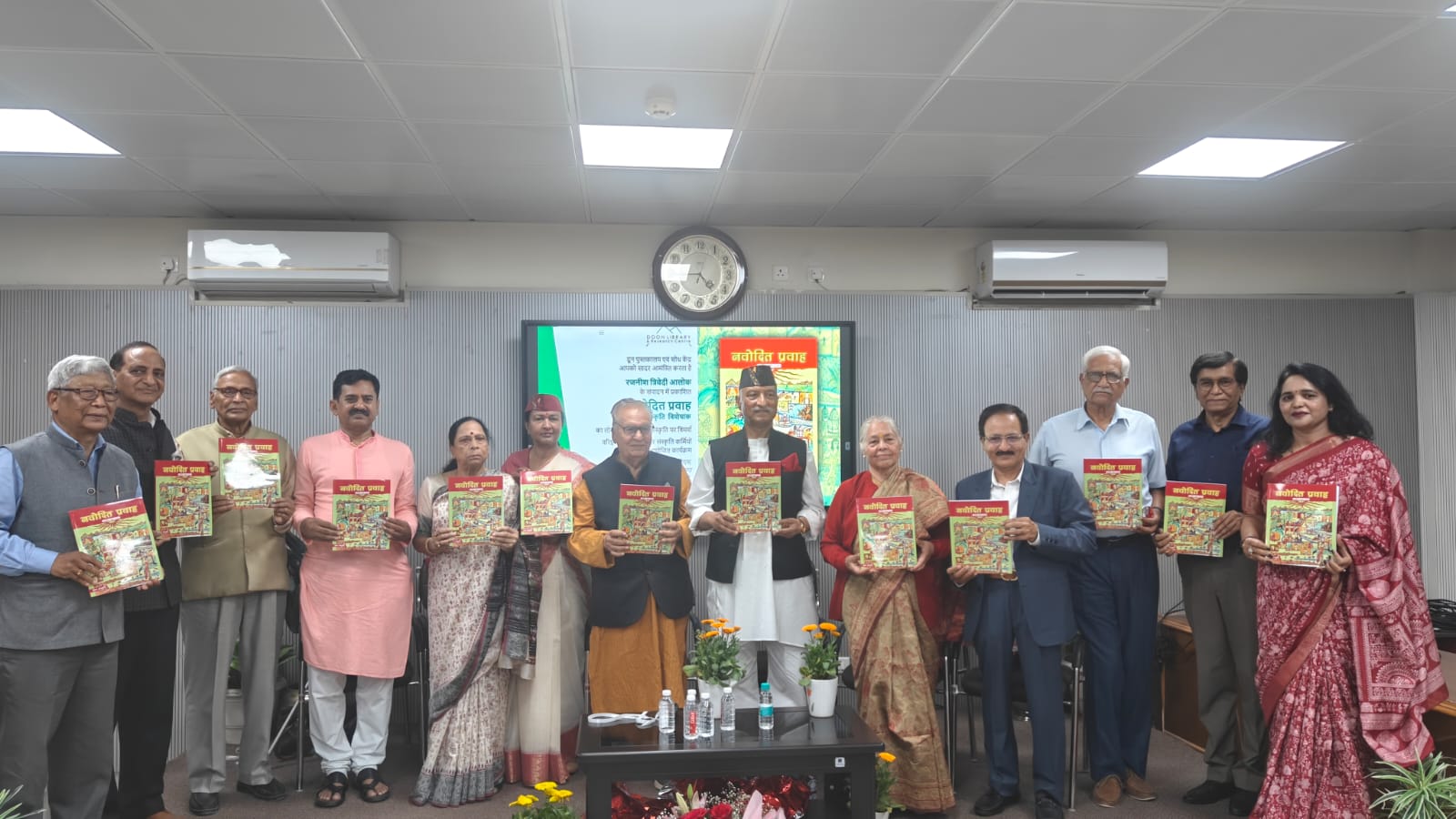 देहरादून, दून पुस्तकालय एवं शोध केंद्र के तत्वावधान में केंद्र के सभागार में आयोजित समारोह में रजनीश त्रिवेदी द्वारा संपादित साहित्यिक पत्र नवोदित प्रवाह के लोक संस्कृति विशेषांक का भव्य लोकार्पण साहित्यकारों द्वारा किया गया। लोकार्पण के पश्चात लोक संस्कृति पर विमर्श भी किया गए।