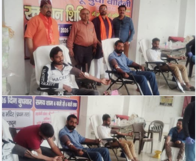 देहरादून,  राजधानी के सहारनपुर चौक स्थित श्री पृथ्वीनाथ महादेव मन्दिर परिसर में आज हिन्दू युवा वाहिनी, उत्तराखण्ड की ओर से एक भव्य रक्तदान शिविर का सफल आयोजन किया गया। मानवता की सेवा के संकल्प के साथ आयोजित इस शिविर में युवाओं और स्थानीय नागरिकों ने उत्साहपूर्वक भाग लिया। संस्था के सदस्यों व अन्य युवाओं ने शिविर में रक्तदाताओं ने बढ़-चढ़कर हिस्सा लिया।, जहां 40 से अधिक रक्तदाताओं ने स्वेच्छा से रक्तदान कर सामाजिक सरोकारों के प्रति अपनी प्रतिबद्धता दोहराई। हिन्दू युवा वाहिनी के प्रदेश अध्यक्ष विकास त्यागी ने शिविर का शुभारंभ करते हुए कहा कि रक्तदान महादान है। उन्होंने बताया कि इस शिविर के माध्यम से एकत्रित किया गया रक्त विभिन्न अस्पतालों में भर्ती जरूरतमंद मरीजों और आपातकालीन स्थितियों में जीवन बचाने के काम आएगा। उन्होंने इस पुनीत कार्य में निस्वार्थ सहयोग देने वाले सभी रक्तदाताओं, स्वयंसेवकों और मेडिकल टीम का विशेष आभार व्यक्त किया। शिविर के सफल संचालन में संगठन के वरिष्ठ पदाधिकारियों ने महत्वपूर्ण भूमिका निभाई। इस अवसर पर शिविर में मुख्य रूप से युवा वाहिनी के प्रदेश उपाध्यक्ष रविश सिंह नेगी, प्रदेश प्रवक्ता रोहित शर्मा, प्रदेश उपाध्यक्ष सुधांशू सेमवाल,सुमित सिंघल, संजय गर्ग तथा त्रिलोकी सिंह बर्गली (मार्गदर्शक), साहिब सिंह कुमांई. दीपक वर्मा, राजीव जैन, संदीप जोशी, संजय कुमार, सुनील शर्मा आदि उपस्थित रहे।