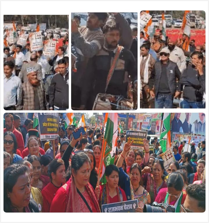 देहरादून, प्रदेश में लगातार आपराधिक घटनाओं और बिगड़ती कानून व्यवस्था, बेरोजगारी, महंगाई, महिला सुरक्षा, खनन और भूमाफिया आदि मुद्दों को लेकर सोमवार को कांग्रेस सड़कों पर उतरी,विभिन्न जनपदों से दून पहुँचे कांग्रेस के दिग्गज नेताओं के साथ हजारों कार्यकर्ताओं ने राजभवन कूच किया, कूच से पहले कांग्रेस नेताओं ने परेड ग्राउंड में सभा की और सरकार के खिलाफ बढ़ते अपराधों, भ्रष्टाचार, महिला उत्पीड़न, बेरोजगारी, बिगड़ती कानून व्यवस्था और जंगली जानवरों के आतंक जैसे विभिन्न मुद्दों को लेकर अपना आक्रोश जाहिर किया।
