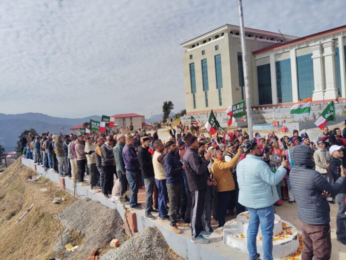 गैरसैंण – एक ओर पूरा देश 77वां गणतंत्र दिवस मना रहा था वहीं उत्तराखण्ड क्रान्ति दल उत्तराखण्ड की स्थाई राजधानी गैरसैंण घोषित करने के लिये सड़कों पर आंदोलन रत था।