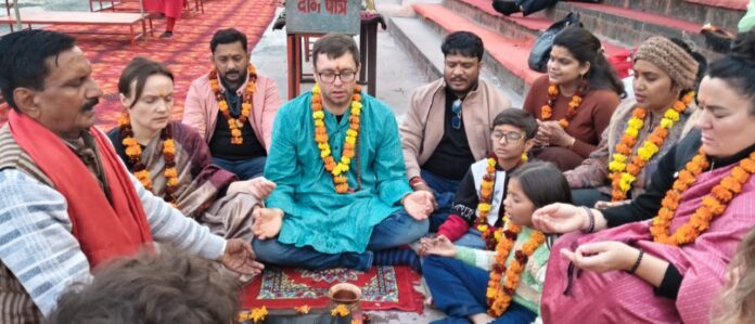 महिलाओं ने विश्व में ईरान, इजराइल, अमेरिका युद्धविराम करने पर की विशेष गंगा आरती